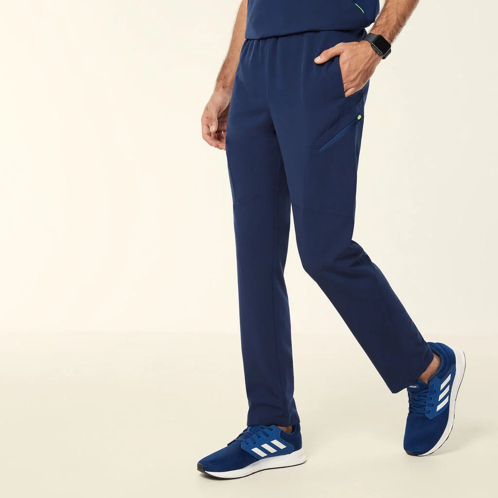 The Drew Slim Scrub Pant combines sleek design with ultimate functionality. Featuring a slim fit and straight leg silhouette, these pants offer a modern, streamlined look. The ribbed waistband with elastic and an internal drawcord ensures a secure, adjustable fit. Designed for convenience, the pull-on style is easy to wear, while the contrast key loop at the waist adds a pop of style. Two hip pockets and two zippered pockets provide ample storage, and the curved back yoke enhances the fit for added comfort.